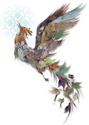 «Vuela sin franquear distancia; se acerca y, con todo, no ha recorrido lugar alguno. Sabe que todos los colores derivan de Simurg, pero él mismo no tiene color. Su nido está en Oriente, pero su lugar en Occidente no queda vacante. Todos se preocupan por él pero a él nadie le preocupa. Todos están llenos de él, pero él está vacío de todo. Todo conocimiento deriva de su hechizo. Los instrumentos de música maravillosos, como el órgano y otros, han sido producidos por su eco y sus resonancias. Mientras no hayas visto a Salomón cierta noche —¿cómo conocerías el lenguaje de los pájaros? El alimento de Simurg es el fuego. Aquel que anuda una pluma de sus alas a su costado derecho pasará a través del fuego.»